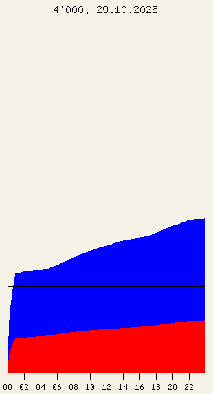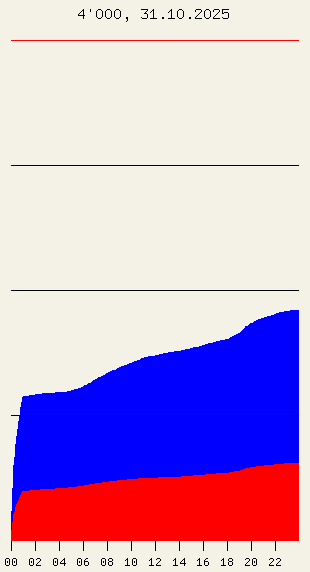 Зелёный график – общее число запросов, синий – с учётом ip-адресов (т.е. два и более запросов в день с одного и того же ip учитываются как один), красный – число успешных запросов с учётом ip-адресов.