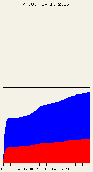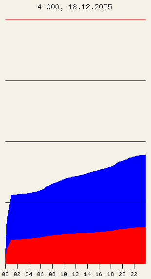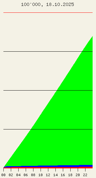 Зелёный график общее число запросов, синий с учётом ip-адресов (т.е. два и более запросов в день с одного и того же ip учитываются как один), красный число успешных запросов с учётом ip-адресов.